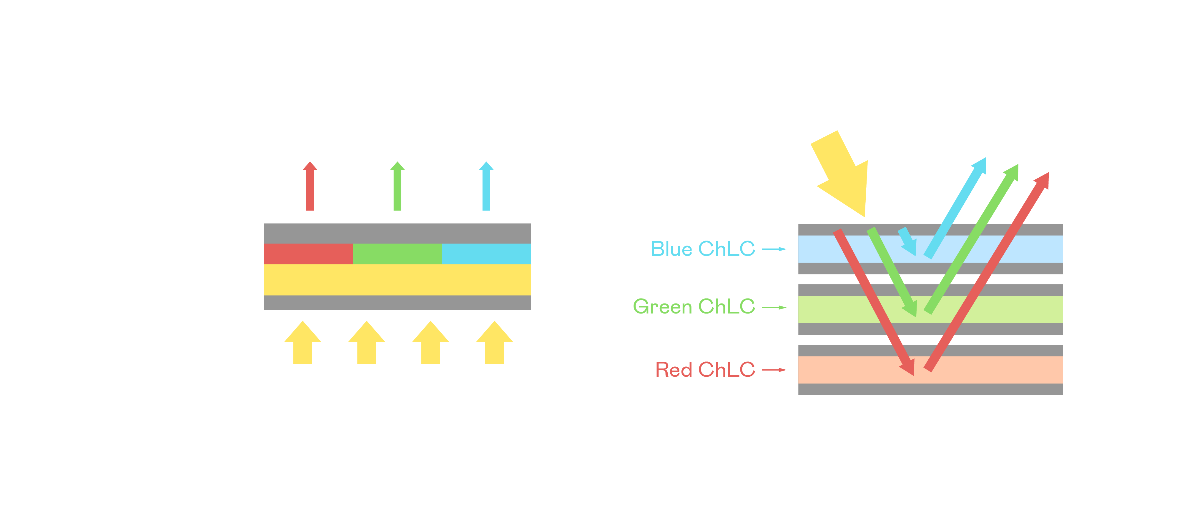 AG亚娱胆固醇液晶显示器是由红、绿、蓝三层胆固醇液晶面板堆叠而成,并采用无彩色滤光片设计,减少环境光在反射过程中的损耗。